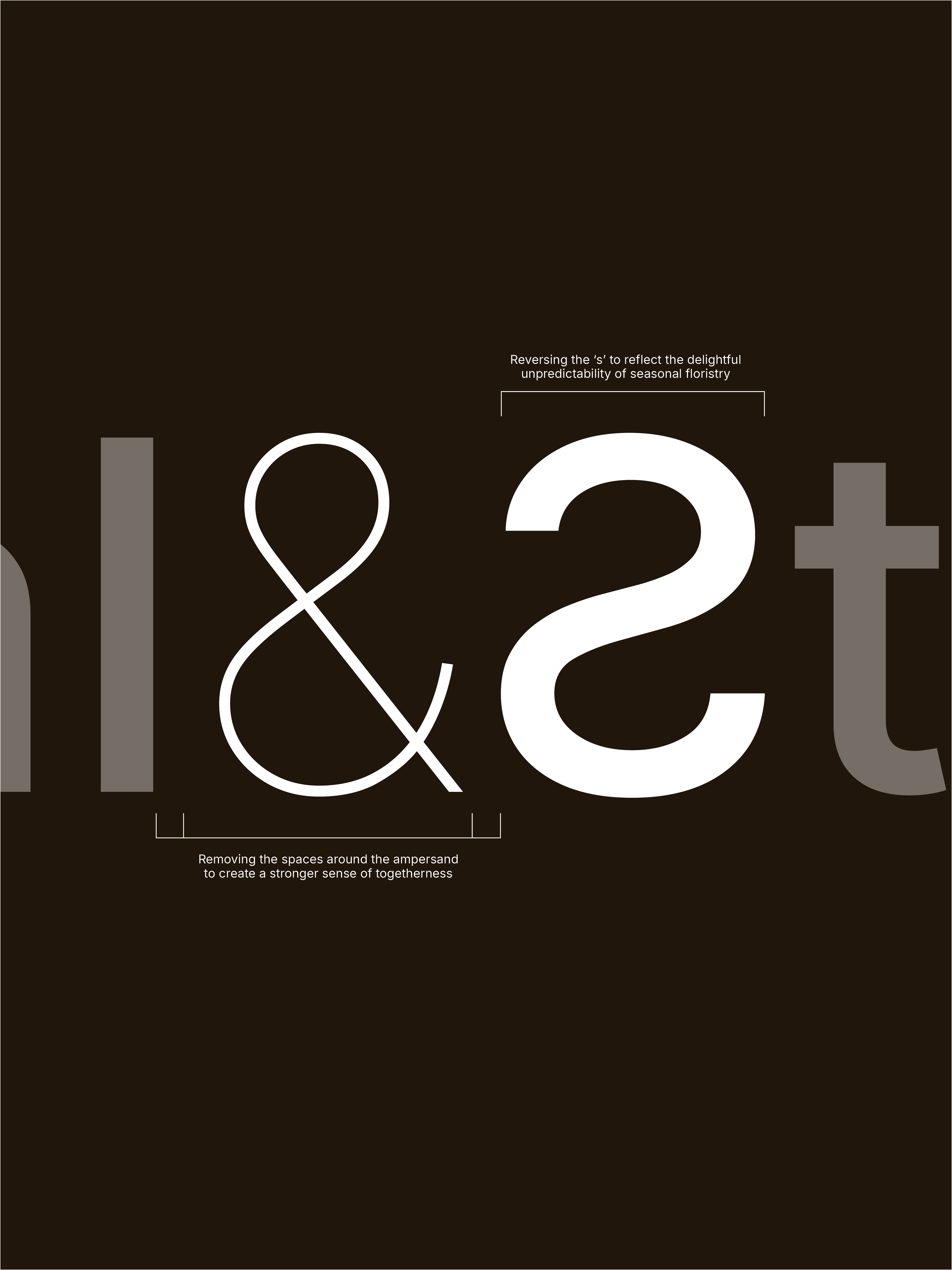 My concept centres on the idea of variability, celebrating imperfection and natural sparseness. This reflects the nature of seasonal floristry, where arrangements change depending on what is growing at the time. I expressed this idea through the logomark, which is made up of repeated āpā shapes that form four petal-like elements. The slight variation in these shapes suggests constant change and movement, while the four petals also symbolise the four seasons. The colour palette draws inspiration from British wildflowers associated with each season: primrose for winter, bluebell for spring, heather for summer, and ivy for autumn. To extend this seasonal concept into the physical brand, the packaging would subtly change throughout the year by altering the colour of the tape used on bouquets and wrapping. This approach maintains a sense of freshness and seasonality while keeping production costs low for the client.